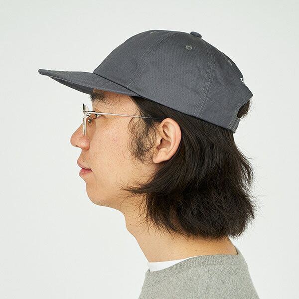 オリジナルファブリックを使用したキャップ。ポリエステル65%・コットン35%の混紡生地に撥水・撥油加工を施し、雨や汚れを弾く高機能な仕上がりに。フラットバイザーにはソフトな芯材を使用しており、折りたたんでポケットやバッグに収納することも可能です。バックル仕様でサイズ調整も簡単。デイリーユースはもちろん、アウトドアや旅行にも便利な一品です。