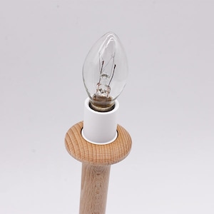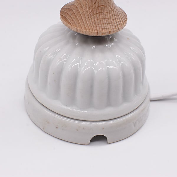 説明:フランスの古い糸巻きと昔の日本家屋に使用されていた陶器ローゼットで製作したランプです。燭台のようなイメージで、キャンドルのような温かなあかりが灯されます。