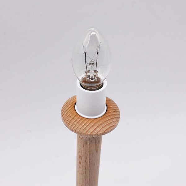 説明:フランスの古い糸巻きと昔の日本家屋に使用されていた陶器ローゼットで製作したランプです。燭台のようなイメージで、キャンドルのような温かなあかりが灯されます。