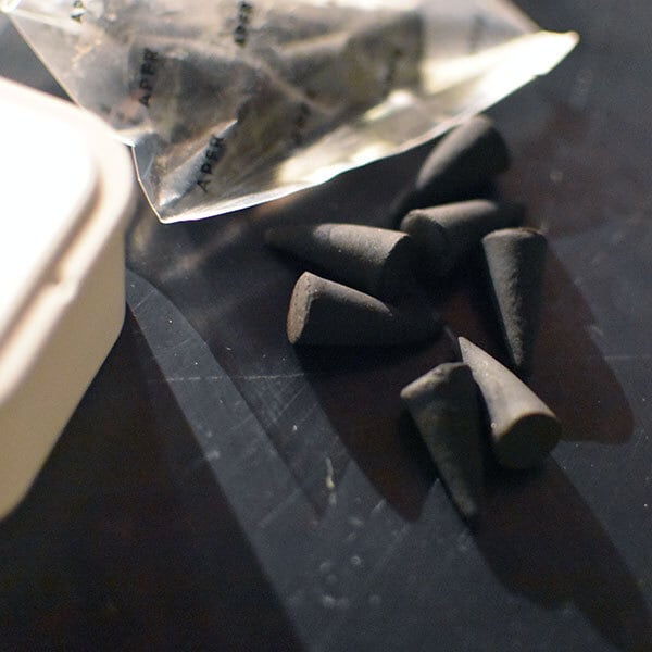 コーンインセンスはお香を円錐形に固めたものです。芯材がないため、スティックとはまた違った香りをお楽しみいただけます。短時間で多くの香りが広がり、灰が散らかりにくい形状のため、旅行先や外でのアクティビティなどデスクや作業場所などの小さなスペースでも、内外問わずいつでもお好きな香りをお楽しみいただけます。